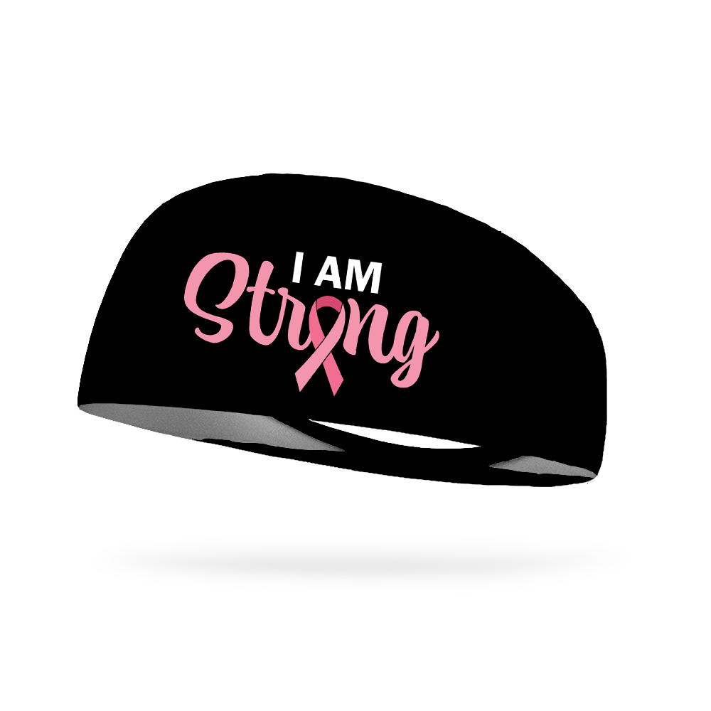 I Am Strong Breast Cancer Ribbon Wicking Performance Headband